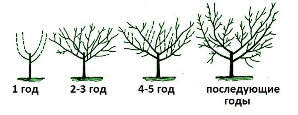 A tapasztalt kertészek a jól ismert technikák alkalmazását javasolják a ritkás, többszintes korona kialakításához. Ennek eléréséhez az első sor legfeljebb hét fő ágát szabad 40 cm távolságra elhelyezni egymástól. Ez a minta évente változik. A kajszifa megfelelő fejlődése érdekében ezt az eljárást az első évtől kezdve kell elvégezni, figyelembe véve az egyes időszakok sajátosságait.