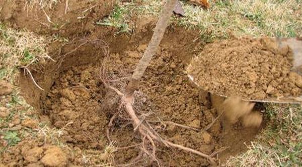 - A fát úgy kell gyökeresíteni, hogy a gyökérnyak körülbelül 5-6 cm-rel a talajszint felett legyen.