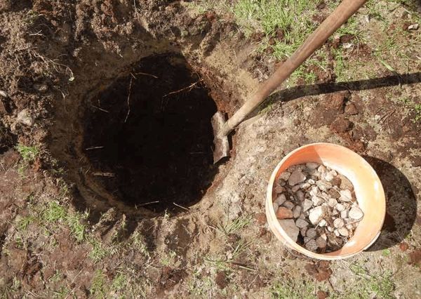 A gödör aljára kavicsból, dióhéjból vagy bármilyen apró kavicsból álló drénréteget helyezünk. A tetejére legalább 20 kg komposztot vagy humuszt keverünk földdel. Ezután adjuk hozzá a gödörből eltávolított felső termékeny földréteget, amelyet fahamuval, káliummal és foszfor műtrágyákkal keverünk össze. Ezt követően fedjük be a gödörből eltávolított maradék földdel. Ha száraz az ősz, öntsünk néhány vödör vizet a gödörbe, fedjük le folpackkal, és hagyjuk ott tavaszig.