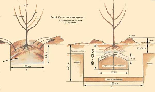 A fákat 4-5 méter távolságra ültetik egymástól. Az előkészített lyukba egy lyukat ásnak, és belehelyezik a palántát, ügyelve arra, hogy a gyökérnyak 6 cm-rel a talajfelszín felett legyen. Egyes kertészek azt javasolják, hogy ültetés előtt 10 tojást üssenek a talajba, hogy további tápanyagokat biztosítsanak a fának. A gyökereket ezután földdel fedik be, először szétterítve azokat. A fa köré egy halmot képeznek, hogy megakadályozzák a gyökérnyak mélyebbre süllyedését, amikor a talaj leülepedik.