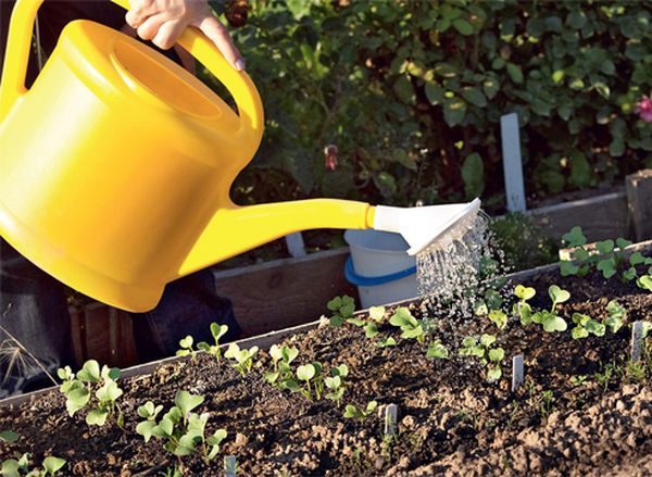 Amíg az első hajtások meg nem jelennek, minden második reggel öntözzük közvetlenül a fonott virágágyást. Négyzetméterenként körülbelül egy öntözőkannányi leülepedett vizet használjunk. Amint a hajtásokon már néhány valódi levél fejlődik, az öntözést napi kétszeri öntözésre, reggelre és estére kell növelni.