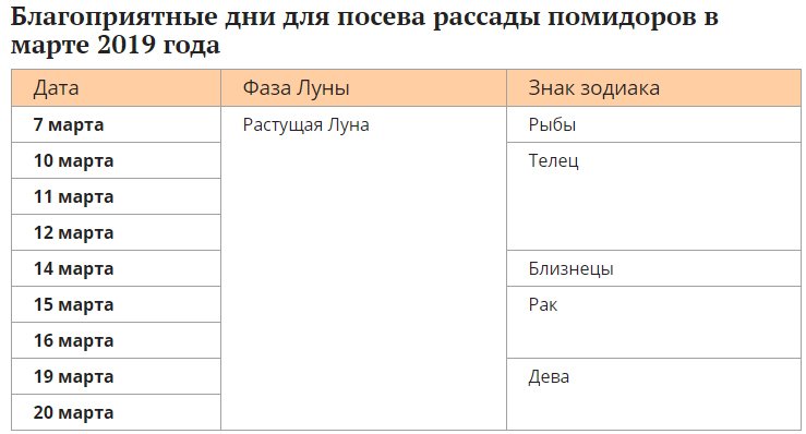 A korai és közép-korai paradicsomfajták magvainak ültetése zárt talajon történő termesztéshez februárban kezdődik. A késő őszi fajtákhoz március vége és április eleje alkalmas. Ebben a hónapban a holdnaptár a következő kedvező napokat javasolja a magvetésre: a 6., 7. és 8. A magokat az 1-jén lehet előkészíteni és beáztatni. Márciusban a hibrid és a magas növésű paradicsomfajták mutatják a legaktívabb növekedést. A palánták vetésének optimális időszaka március 10. és 20. között van. Azonban ne essen kétségbe, ha valamilyen okból nem tudja elvetni a palántáit ezekben az időpontokban. Más időpontokban is vethet, de kerülje az újholdat és a teliholdat.