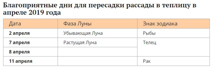 Ha a magokat egyetlen edénybe ültették, márciusban egyenként ültetik át őket. Az átültetéshez leggyakrabban műanyag poharakat használnak. Április eleje a legjobb időszak a palánták üvegházba ültetésére. A talajt a fogyó hold idején (április 2-4.) vagy a növő hold idején (április 9-10.) készítik elő. Ezután elkezdhetjük az átültetést az üvegház talajába.