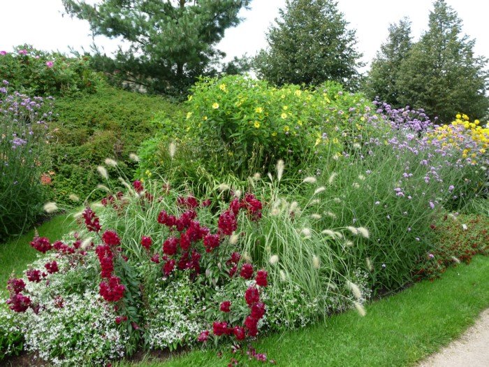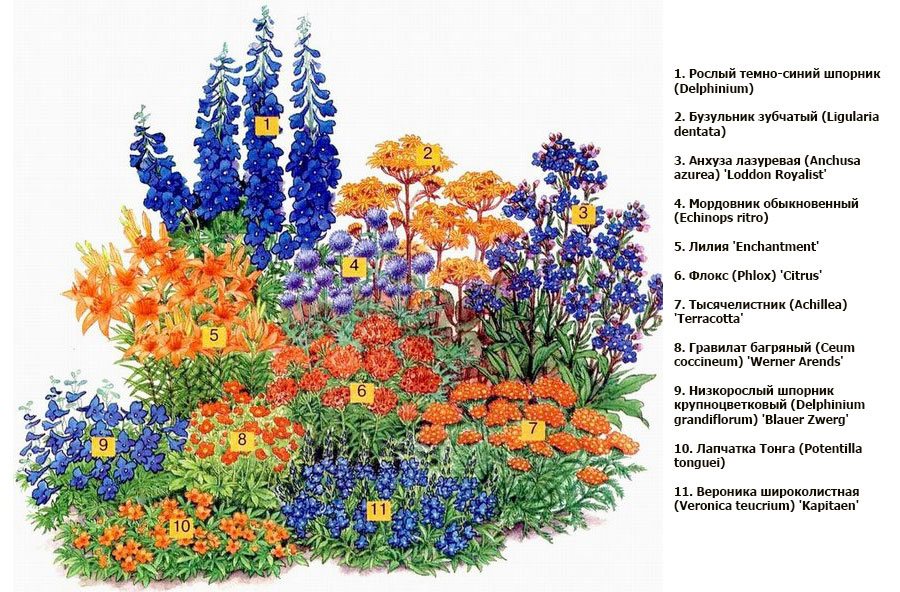 Kész sémákat és példákat találhat az ilyen kompozíciókra az interneten. A mixborder abban különbözik az egyszerű virágágyástól, hogy a benne lévő növényeket szigorú sorrendben ültetik, de úgy néz ki, mintha a kompozíciót a természet hozta volna létre, és önmagában nőne. Minden vonal simán átfolyik egymásba, a zöld növények és cserjék alkotják a virágágyás hátterét, a rétegekbe ültetett élénk virágok pedig dekoratív funkciót töltenek be és vonzzák a figyelmet.