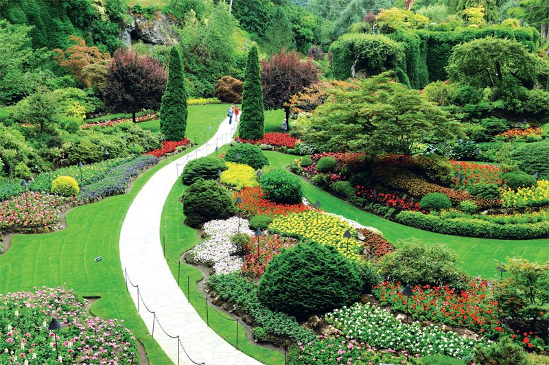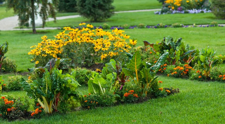 A liliomok, szegfűk és lángvirágok által keretezett virágzó cserjék lenyűgözően mutatnak a gyepen. Számos alacsony növésű évelő alkalmas az ösvények szegélyezésére: bukszus, hosta, sztachys, kőtörőf és árvácskák.