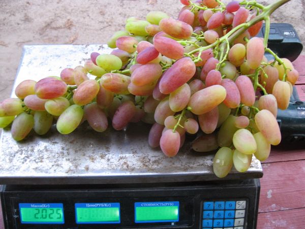 A fürtök teljes beérése a vegetációs időszak kezdetétől számítva körülbelül 115 napot vesz igénybe. Déli régiókban termesztve a betakarítás július harmadik dekádjában történhet. A szőlő megfelelő gondozása és metszése két betakarítást tesz lehetővé – egyet nyáron és egyet októberben. Egyetlen bokor akár 20–25 kg érett bogyót is hozhat.
