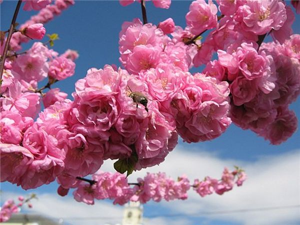 - Sakura Payan. Kompakt, gömb alakú fa (néha cserje), amely akár 2 méter magasra is megnőhet. Nagy, dupla rózsaszín, fehér közepű virágai vannak. Levelei kicsik, és ősszel vonzó sárgásvörösre színeződnek.