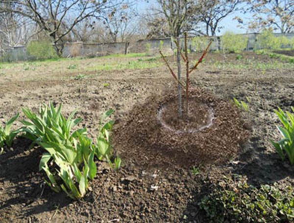 Végül töltsd fel a lyukat földdel az alsó rétegből, és kösd a fát a karóhoz. Óvatosan tömörítsd le a talajt, hogy lyukat képezz a törzs körül. Az első öntözéshez két vödör vízre lesz szükséged. Végül takard be a lyukat fűrészporral.