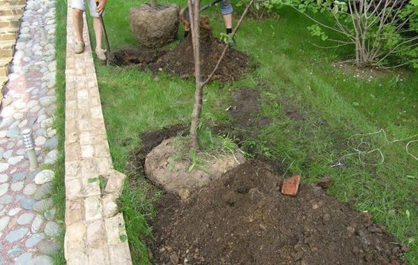 Az ültetőgödör átmérője körülbelül 80 cm, mélysége pedig 50 cm legyen – a gödör mérete a gyökerek méretétől függően változhat. Válassza szét a gödörből eltávolított föld felső és alsó rétegét. A föld felső rétegét keverje össze komposzttal, szuperfoszfáttal, fahamuval és kálium-kloriddal (a tavaszi ültetés trágyázást igényel – nélküle a fa sokkal gyengébben fog fejlődni, vagy nem fog virágozni).