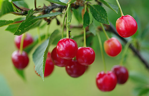 A bogyók kiváló ízűek. Héjuk sötétvörös. Átlagos súlyuk körülbelül 4 gramm. A hús nagyon könnyen elválik a magtól. A gyümölcs megjelenése, gazdag színének és fényes héjának köszönhetően, nagyon szép. Érdemes megjegyezni, hogy érett állapotban a gyümölcsök nem hullanak le, hanem az ágakon maradnak. Ellenállnak a repedéssel szemben is.